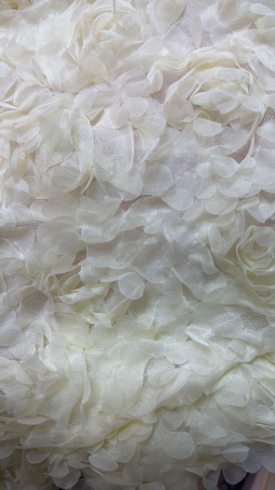 An ethereal ivory sleeveless gown adorned with textured floral detailing, offering timeless elegance for refined occasions.