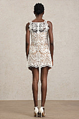 Delicate, sophisticated, and effortlessly chic — our White Lace Mirage Mini Dress is the epitome of timeless elegance. This intricately designed lace dress features exquisite embroidery over a nude base, giving the illusion of soft, sculpted art on the skin.