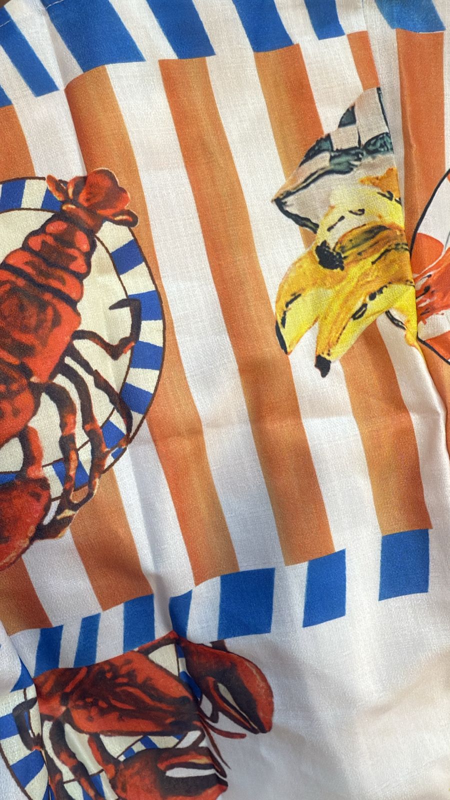 • Print: Tropical fruits and vegetable motifs in vibrant multicolor
