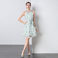 The halter neckline with a subtle front keyhole cutout adds a touch of sophistication, while the cinched waist and flared mini skirt create a flattering, youthful silhouette. Perfect for events where grace meets glamour, this dress effortlessly blends charm and confidence.