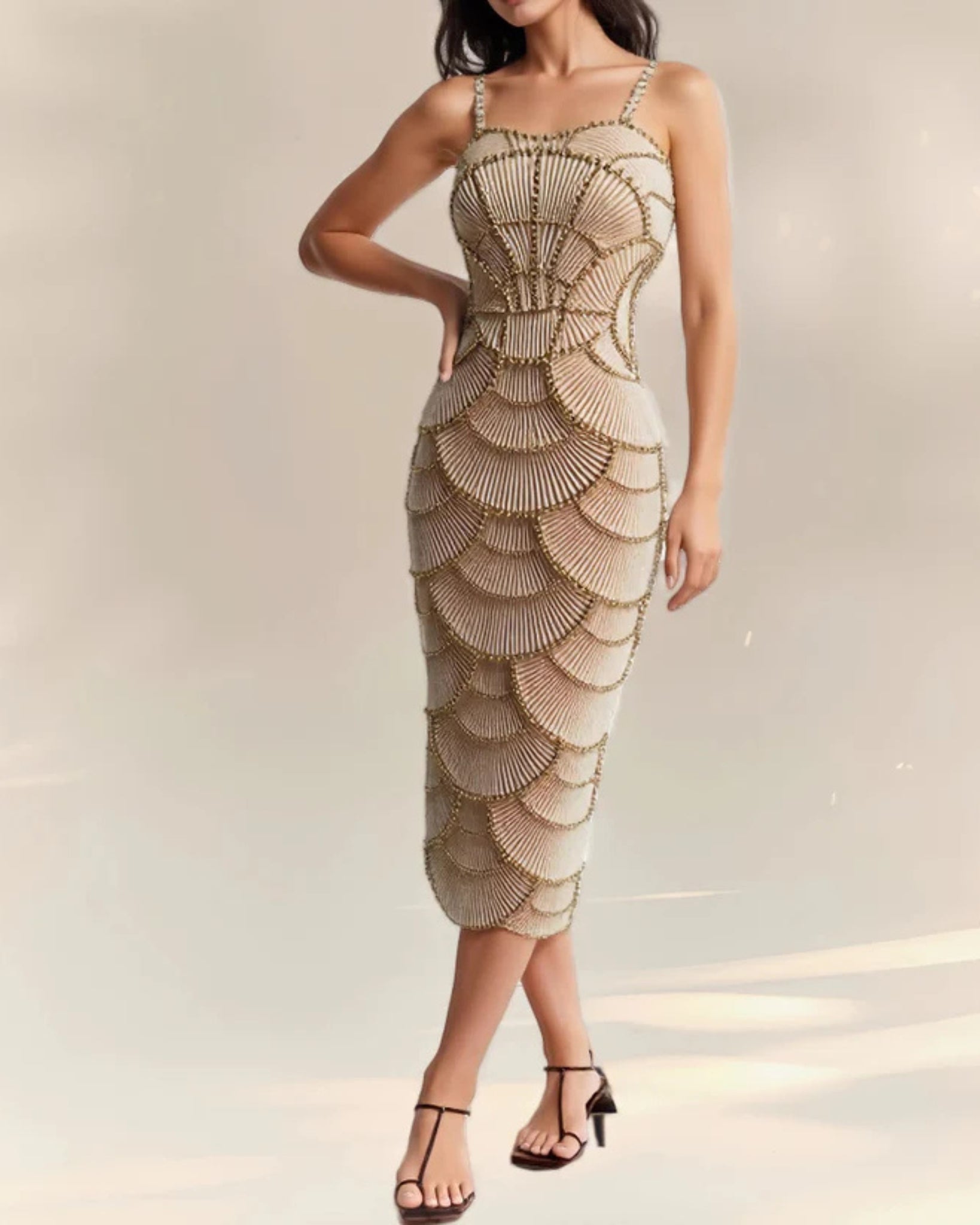 The Mirabelle Pearl Sequin Label Dress exudes timeless elegance with its intricate cascade of shimmering pearl sequins, creating a captivating, ethereal glow. The daring waist cut-out adds a modern, seductive touch, elevating the dress to show-stopping status. Perfect for a glamorous gala or intimate evening, this dress promises unforgettable sophistication and allure.