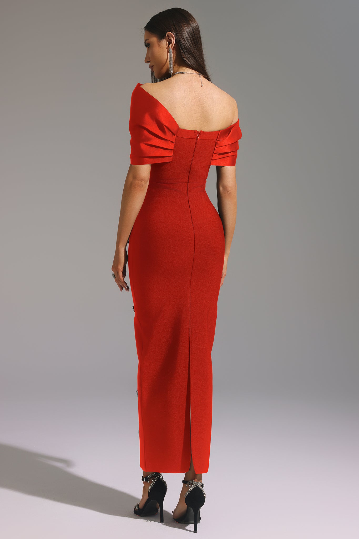 Scarlet Aurelia Embellished Off-Shoulder Gown